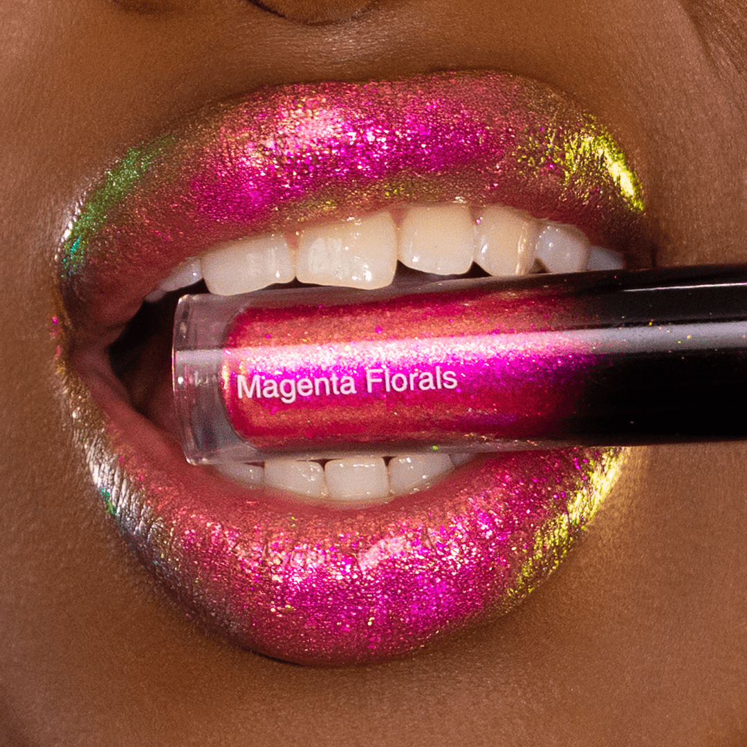 Introducing "Magenta Florals", a mesmerising lip gloss shade that transforms from a lively Barbie pink, radiating the vibrancy of blooming florals, to a glistening gold reminiscent of the sun's warm glow, concluding with a fresh, verdant green hue symbolizing nature's lush foliage. This dynamic shade captures the playful transition from pink to gold and finally to green, adorning your lips with a captivating array of colors inspired by the charm and beauty of blossoming flowers in springtime.