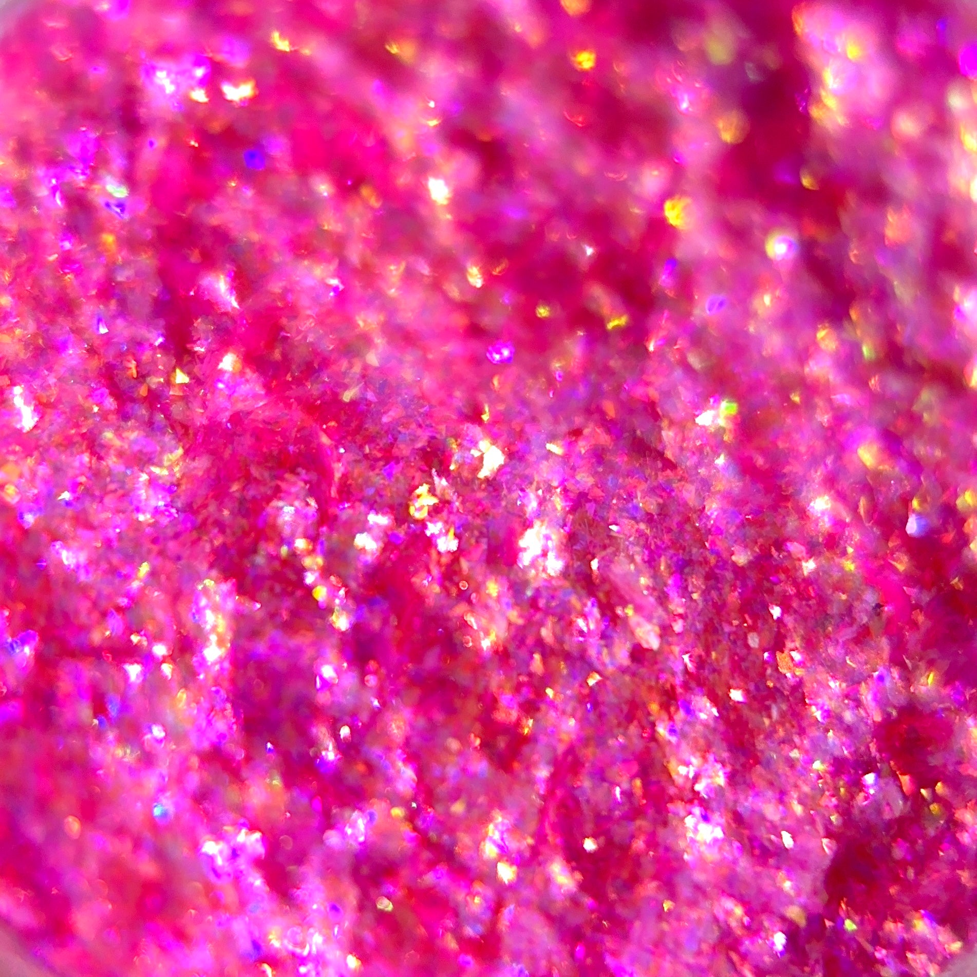 Introducing "Magenta Florals," an eyeshadow that transitions from vibrant magenta, like blooming flowers at dusk, to a shimmering gold, and finally to a zesty lime green, capturing the lively essence of spring foliage. Let this captivating colour spark your creativity and add a touch of vibrant beauty and energy to your look.