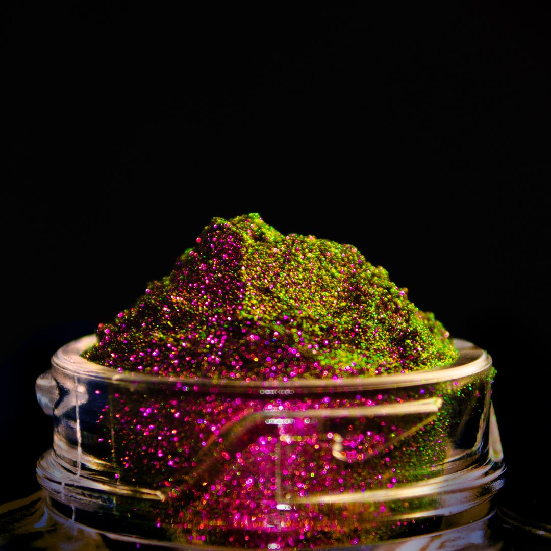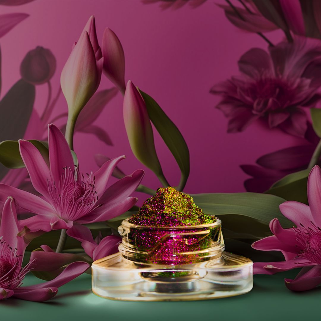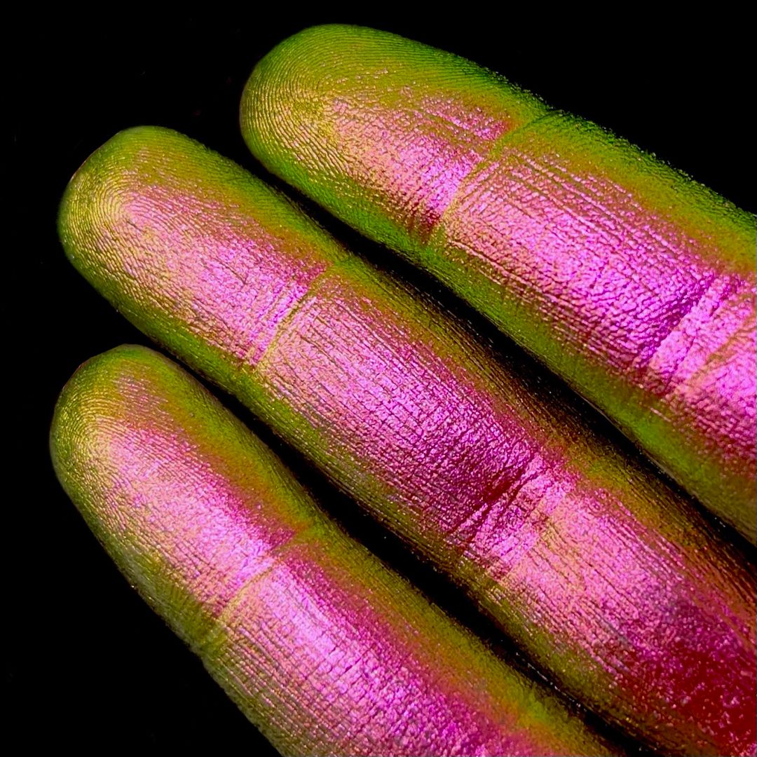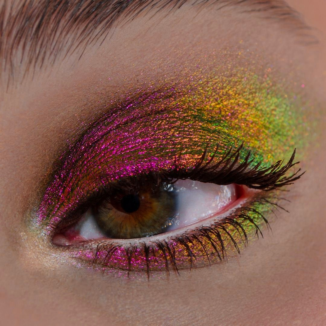 Meet "Playful Spring," a multichrome eyeshadow pigment that transitions from a fresh, soft green to a radiant gold and finally to a vibrant fuchsia pink. This enchanting shade captures the spirit of new growth and blooming flowers, adding a touch of playful elegance to your look and celebrating the magic of the changing seasons.